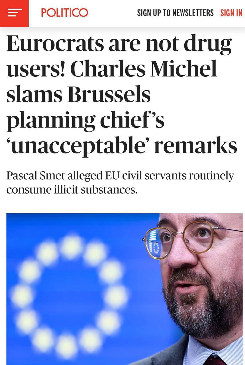 Президент Евросовета Шарль Мишель раскритиковал госсекретаря Брюсселя по вопросам городского планирования Паскаля Смета за утверждение, что "еврократы" регулярно употребляют наркотики.