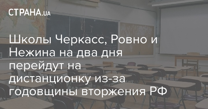 Школы Черкасс, Ровно и Нежина на два дня перейдут на дистанционку из-за годовщины вторжения РФ