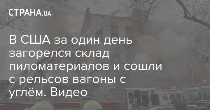 В США за один день загорелся склад пиломатериалов и сошли с рельсов вагоны с углём. Видео