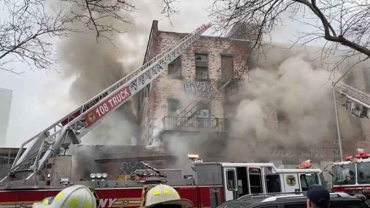 В американском Бруклине (штат Нью-Йорк) загорелся склад пиломатериалов.