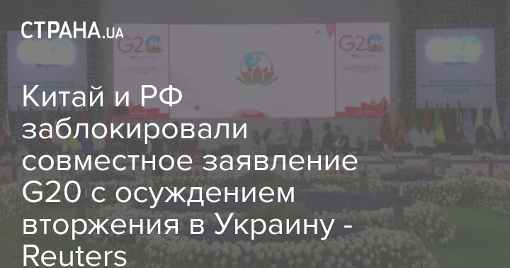 Делегации Китая и РФ заблокировали совместное коммюнике "Большой двадцатки" на саммите в Индии, в котором западные страны хотели прямо осудить вторжение РФ в Украину.