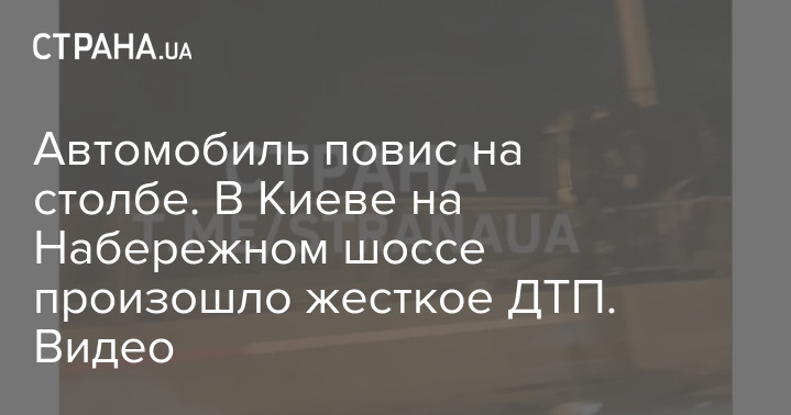 На кадрах можно заметить, что в результате аварии автомобиль повис на столбе.