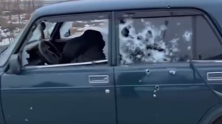 Судя по разбросу пулевых отверстий, автомобиль ВАЗ 2107 был обстрелян с левой стороны обочины. В салоне в момент съемки на переднем водительском сидении видно тело человека, вероятно, это погибший, о котором заявлялось изначально.