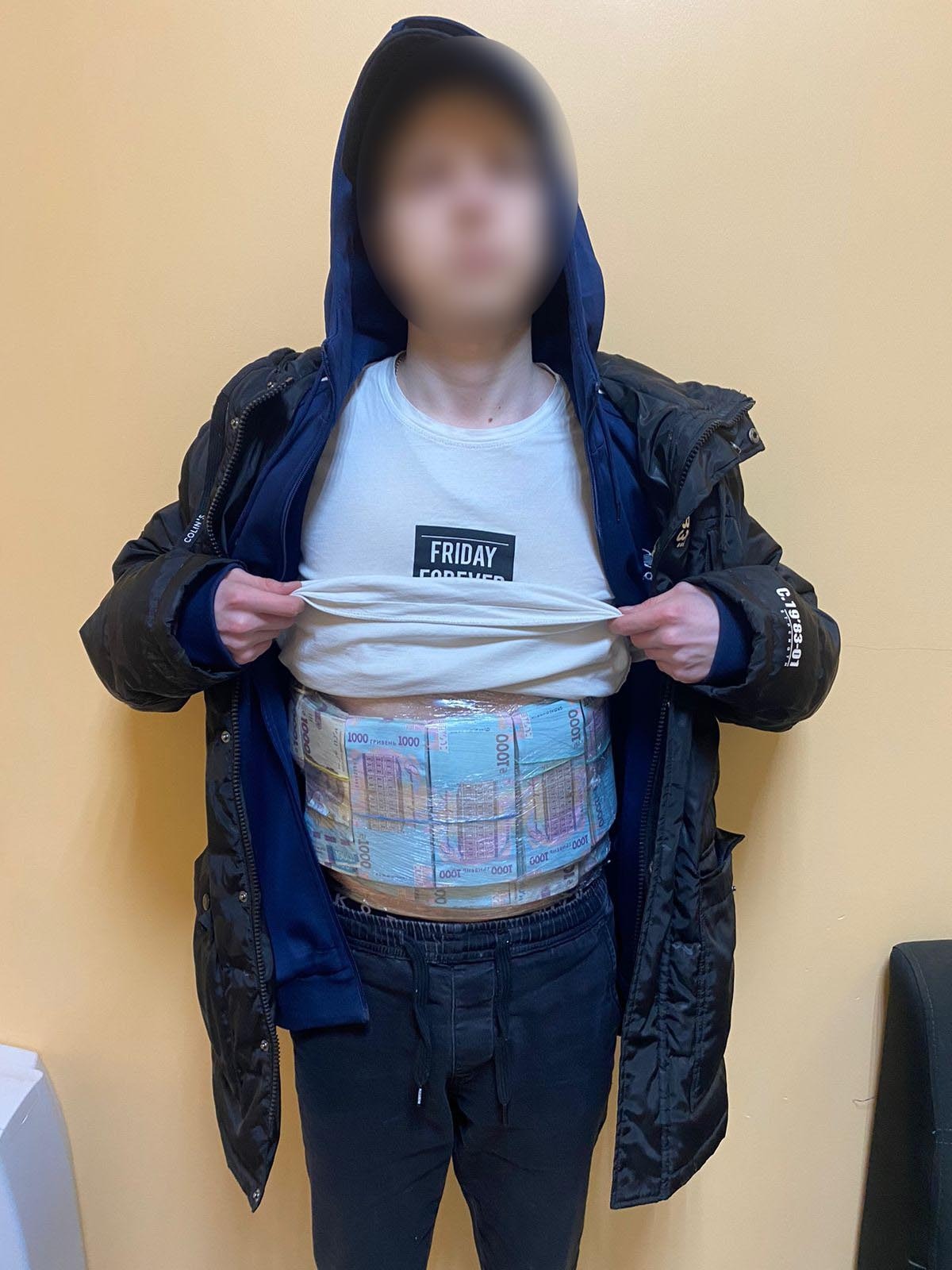 В пункте пропуска Орловка Одесской области мужчина пытался незаметно перевезти большую сумму денег. Он примотал пищевой пленкой средства и хотел их скрыть под одеждой. Однако пограничники разоблачили его.