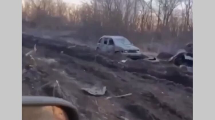В Сети появилось видео последней дороги на Бахмут. Голос за кадром говорит, что это грунтовая дорога, по которой можно передвигаться украинским военным, но и она простреливается россиянами.