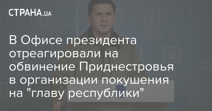Вслед за Службой безопасности Украины на сообщение о подготовке покушения на руководство непризнанного Приднестровья отреагировали в Офисе президента.