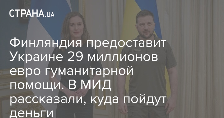 "Чтобы облегчить человеческие страдания и укрепить страну в разгар войны, Финляндия выделяет Украине 15 миллионов евро на гуманитарную помощь и 14 миллионов евро на поддержку сотрудничества в целях развития", - говорится в сообщении.