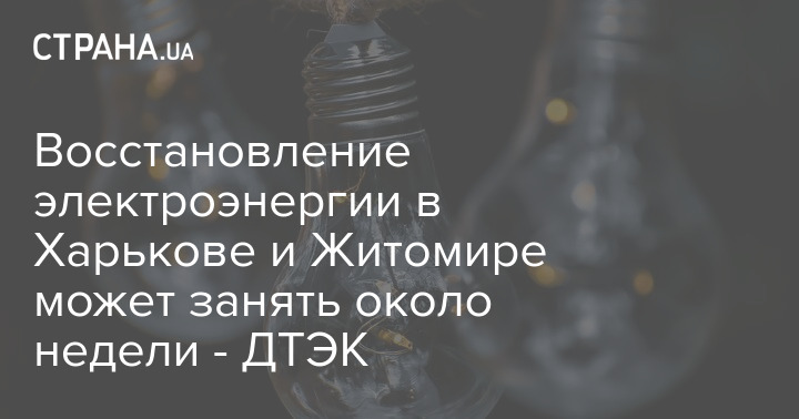 Восстановление подстанций после вчерашней ракетной атаки РФ в Харькове и Житомире может занять больше времени, чем планировалось.