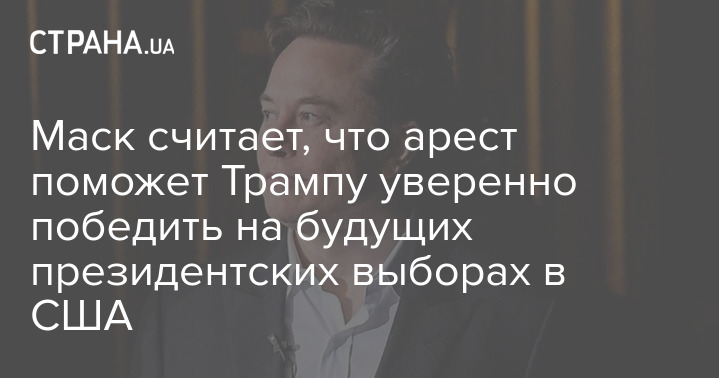 Американский бизнесмен Илон Маск считает, что задержание бывшего президента США Дональда Трампа поспособствует его победе на президентских выборах в 2024 году.