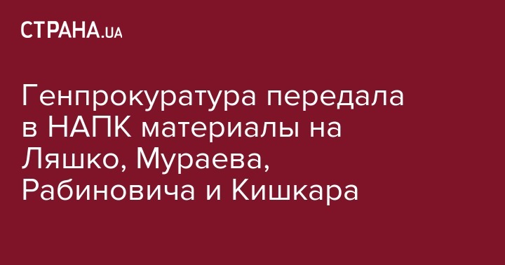Генпрокуратура передала в НАПК материалы на Ляшко, Мураева, Рабиновича и Кишкара