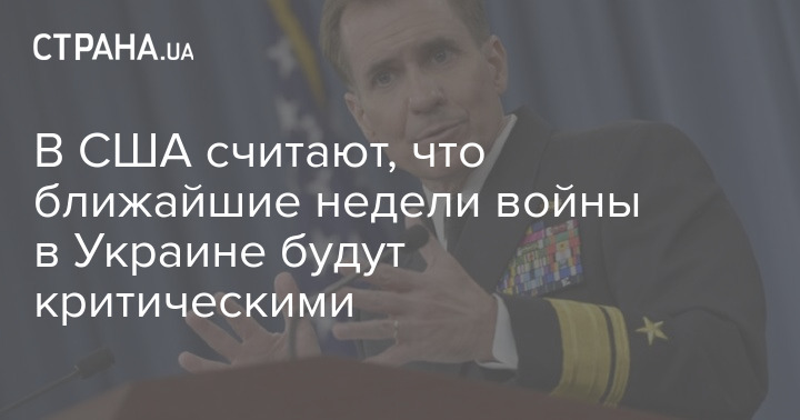 Официальный представитель Совета национальной безопасности США Джон Кирби озвучил мнение, что ближайшие недели войны в Украине будут "критическими".