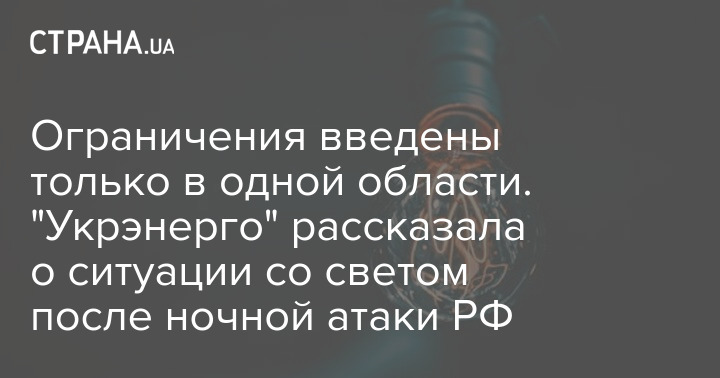 Ограничения электроснабжения из-за ударов по инфраструктуре в среду, 22 марта, сохраняются лишь в Житомирской области. В других областях ограничения не применяют.