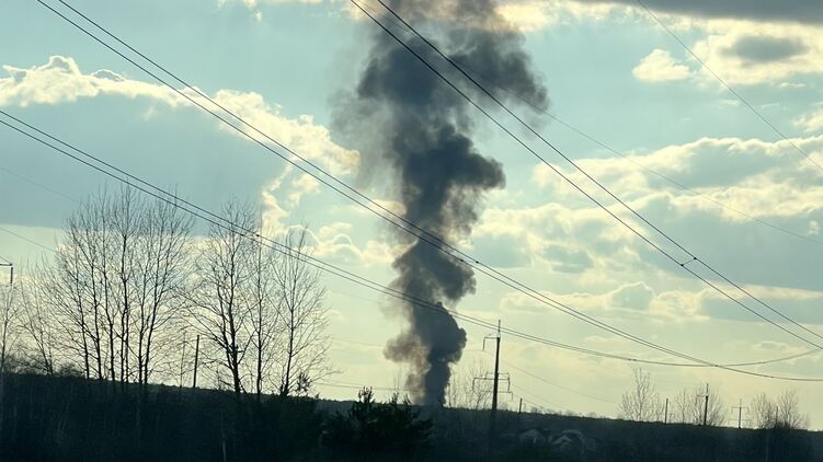 Журналист также опубликовал фото столба черного дыма над городом.