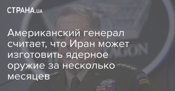 "Иран может произвести расщепляющийся материал для ядерного оружия менее чем за две недели, и ему потребуется еще несколько месяцев для производства настоящего ядерного оружия", - сказал высокопоставленный генерал.