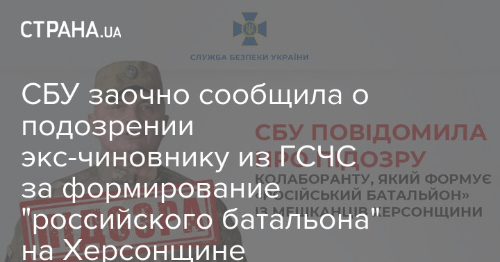 Служба безопасности Украины заочно сообщила о подозрении бывшему одесскому чиновнику из ГСЧС, который сейчас формирует "российский батальон" из жителей Херсонской области.