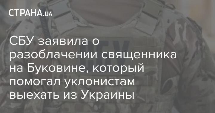 Служба безопасности Украины заблокировала канал незаконного выезда мужчин призывного возраста за границу на Буковине. По данным СБУ, к ней был причастен священнослужитель УПЦ, ему сообщили о подозрении.