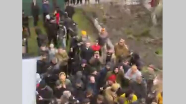У Свято-Покровского храма в Хмельницком собрались активисты. Скриншот видео