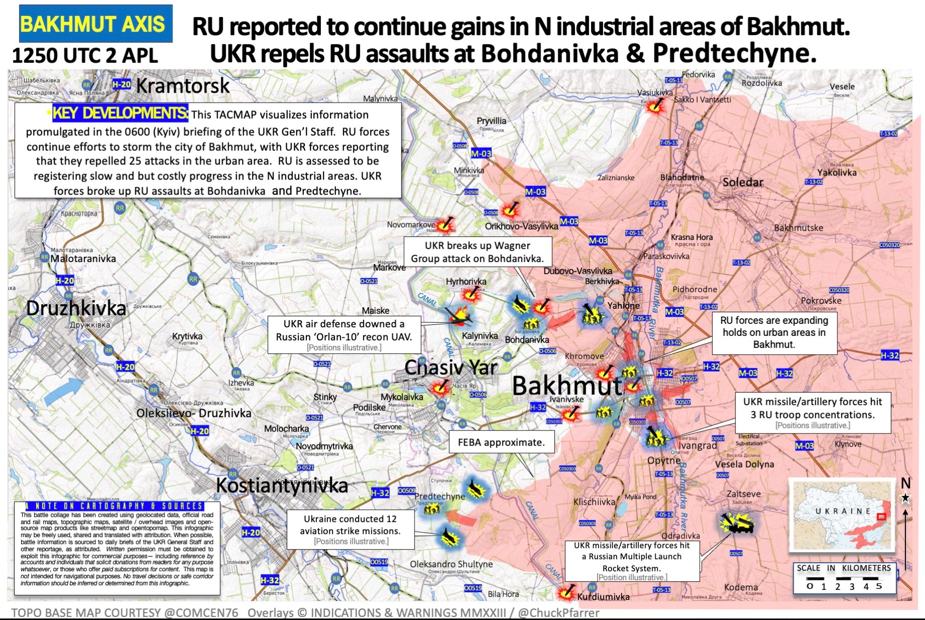 РФ не прекращает штурмовать Бахмут, пытается взять его под полный контроль, там отразили более 25 атак, сообщает Генштаб. Также были бои в районе населенных пунктов Богдановка и Предтечино.