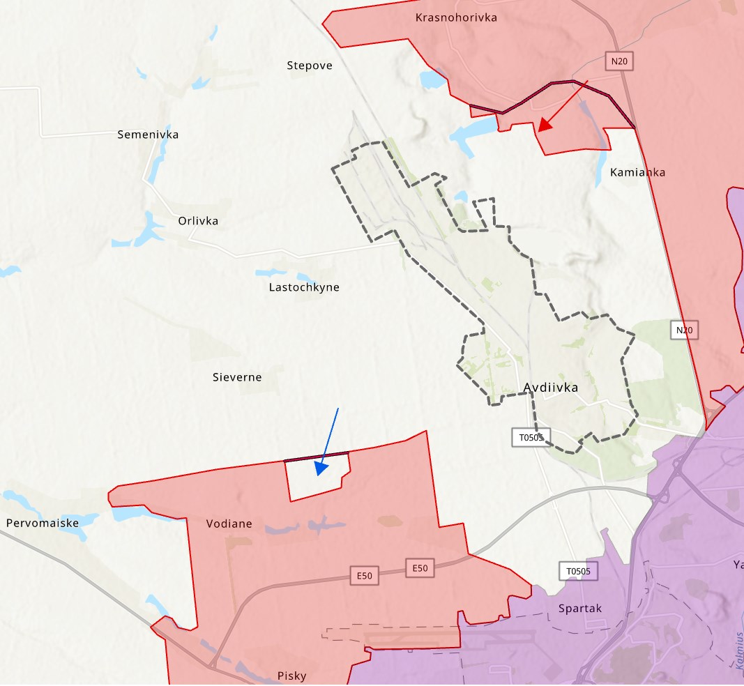 Что это за позиции - неясно, но западные блогеры предполагают, что ВСУ продвинулись скорее всего к северу от Водяного (к юго-западу от Авдеевки).
