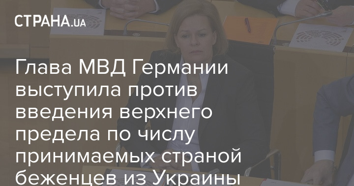 Министр внутренних дел Германии Нэнси Фезер выступила против введения верхнего предела по числу принимаемых страной беженцев из Украины и по объему выделяемых на эти цели бюджетных средств.