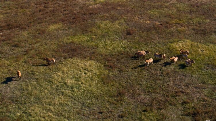Чернобыльский заповедник опубликовал фото лошадей Пржевальского на весенней поляне
