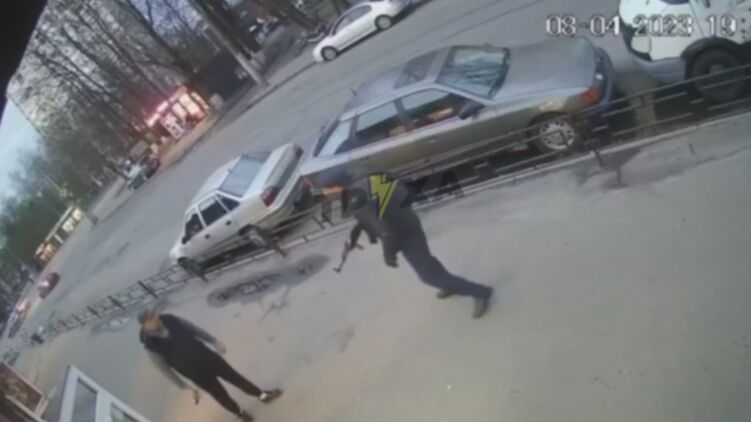 В Киеве неизвестный в гражданской одежде открыл стрельбу из автомата по магазину. Видео