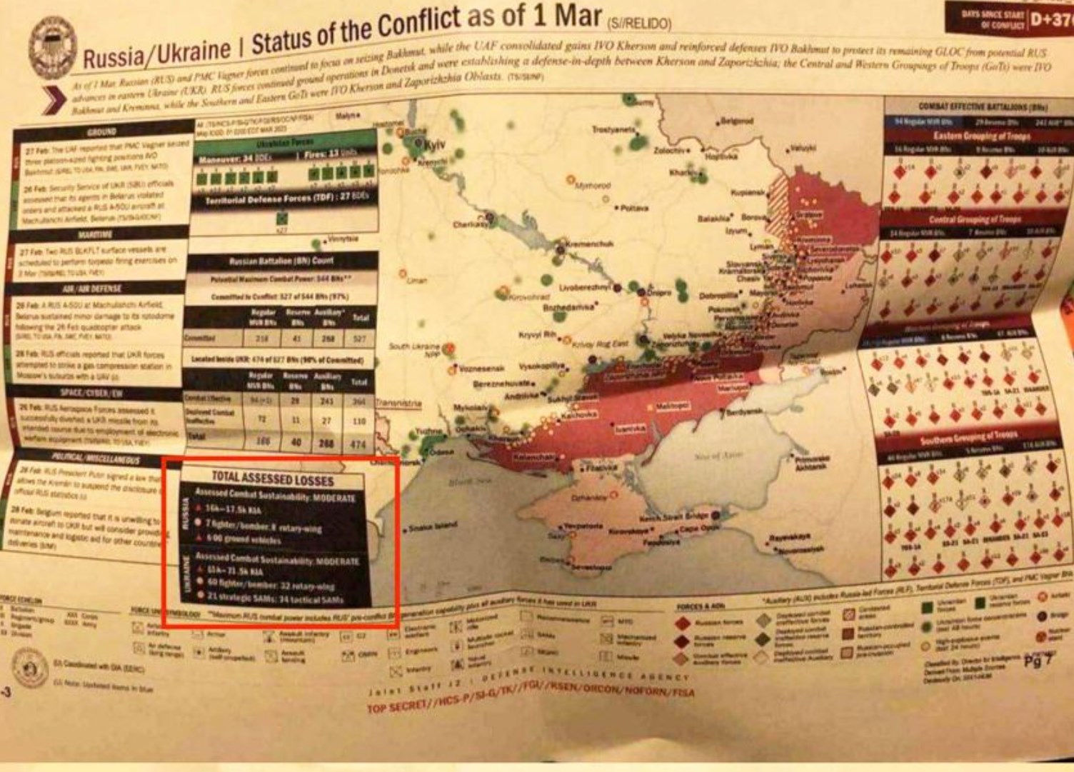 Часть файлов касаются военной помощи Украине, обстановки на фронте и подготовки готовящегося наступления Киева. Другие содержат информацию о странах Ближнего Востока и Китая, а также о слежке американцами за союзниками.