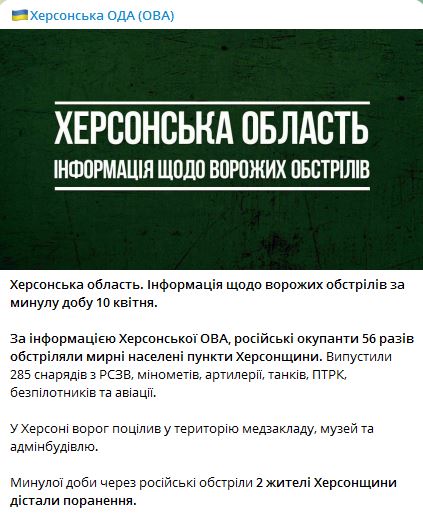В самом Херсоне враг попал в территорию медучреждения, музей и админздание.