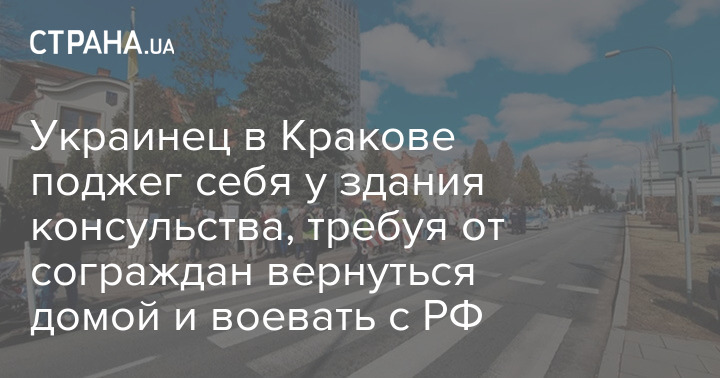 Украинец в Кракове поджег себя у здания консульства, требуя от сограждан вернуться домой и воевать с РФ