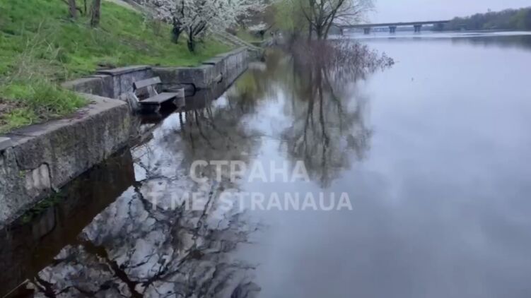В результате подъема воды в реке Днепр в столице наблюдается подтопление береговой линии.