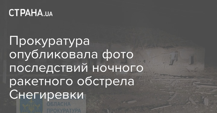 Прокуратура опубликовала фото последствий ночного ракетного обстрела Снегиревки