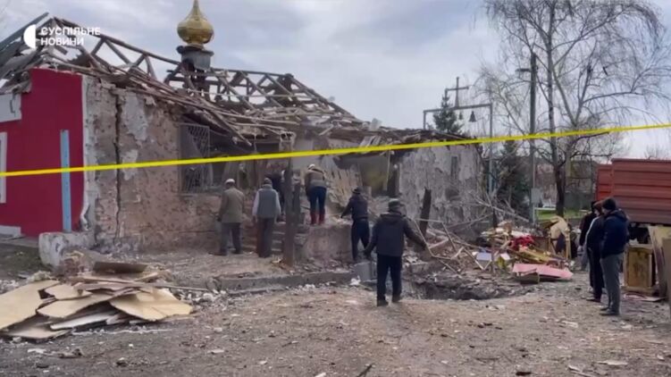 В Камышевахе Запорожской области одна из ракет попала в церковь, людей внутри не было, сообщает глава местной администрации (первое видео).