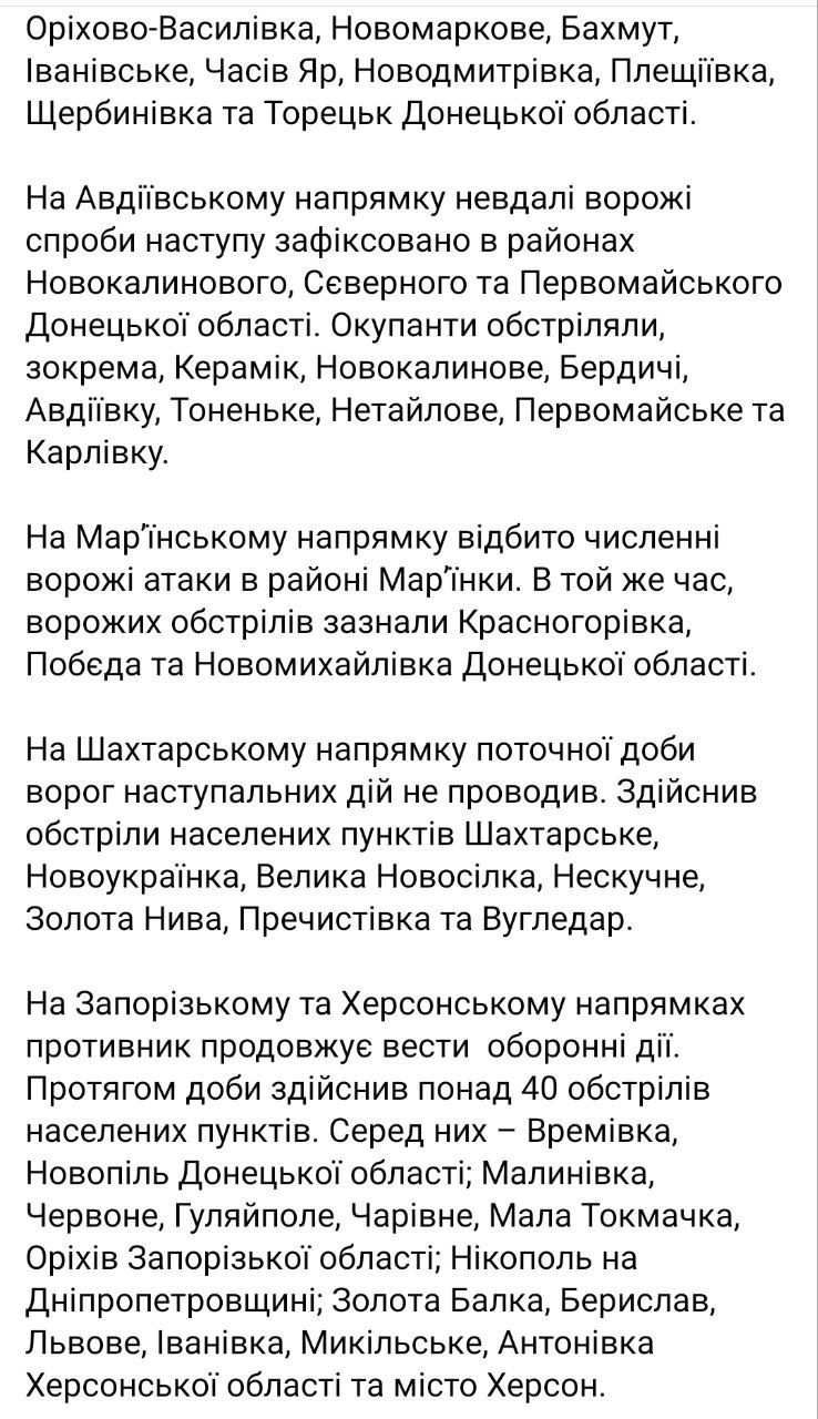 - На Бахмутском направлении - бои за Бахмут, Ивановское и Предтечино.