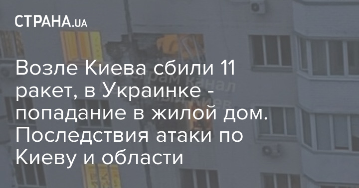Губернатор Киевской области Руслан Кравченко сообщил, что в результате падения обломков российской ракеты в Украинке есть попадание в многоэтажный дом.