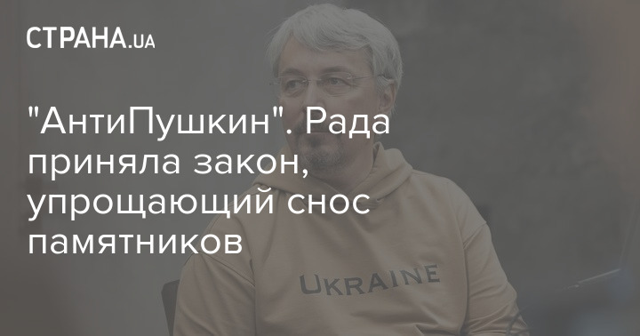 "Если с переименованием улиц процесс легче, то со сносом или переносом памятников - законодательно зарегулирован. Поэтому мы в Министерстве культуры и информационной политики Украины разработали законопроект, который стал известен как "АнтиПушкин". Сегодня депутаты во втором чтении большинством приняли наш проект закона. Теперь есть законные основания для извлечения памятников культурного наследия из Государственного реестра недвижимых памятников Украины, являющихся символом российской имперской и советской тоталитарной политики и идеологии", - пишет Ткаченко.