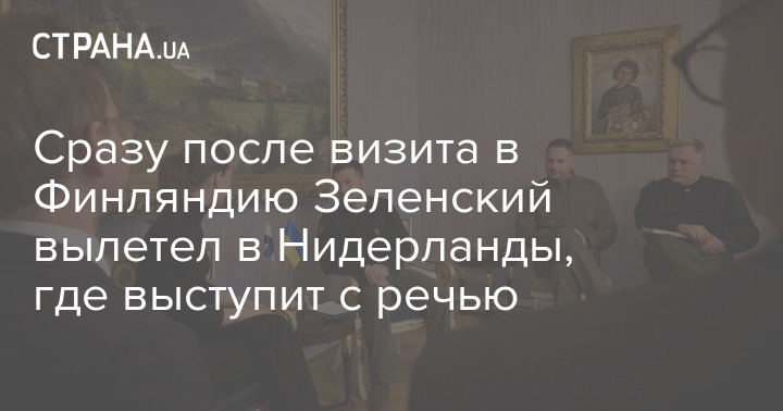 После визита в Финляндию Владимир Зеленский сегодня не вернулся в Киев, а отправился с визитом в Нидерланды.