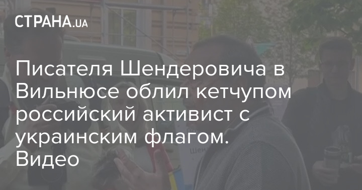 Писателя Шендеровича в Вильнюсе облил кетчупом российский активист c украинским флагом. Видео