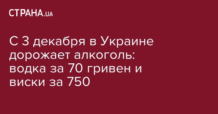 С 3 декабря в Украине дорожает алкоголь: водка за 70 гривен и виски за 750