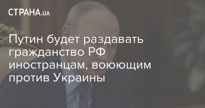 Президент России Владимир Путин подписал указ, которым упростил получение российского гражданства теми иностранцами, которые воюют за РФ в Украине.