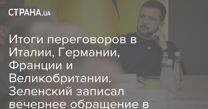 Итоги переговоров в Италии, Германии, Франции и Великобритании. Зеленский записал вечернее обращение в поезде