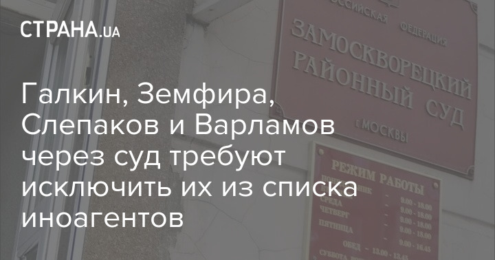 Юморист Максим Галкин, певица Земфира Рамазанова, актер Семен Слепаков и журналист Илья Варламов подали иски к Министерству юстиции России с требованием исключить их из списка иноагентов. Все иски поданы в Замоскворецкий суд Москвы.