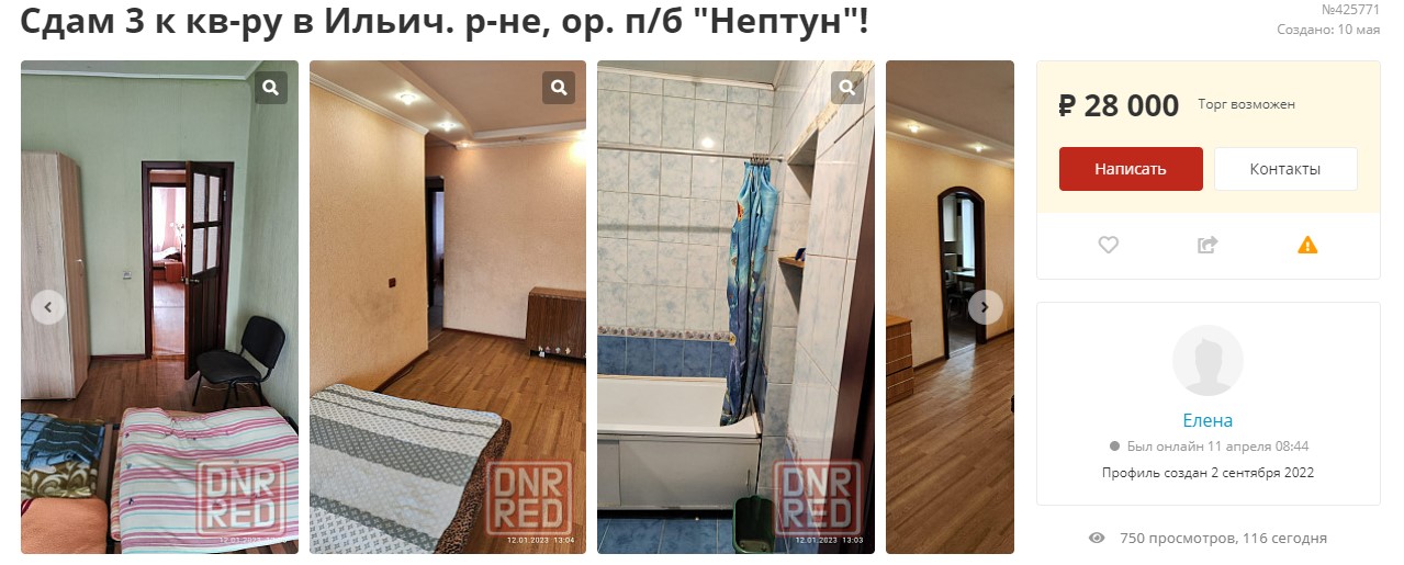 "Во время "СВО" дом практически не пострадал, ведется капитальный ремонт всего дома. Квартира не пострадала, только штукатурка осыпалась и т.п. Дом располагается в спальном районе. До моря 20-30 минут пешком. Школа и детский сад в 3 минутах ходьбы", — пишет собственник и просит 1,5 млн рублей (700 тысяч гривен).