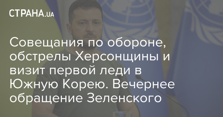 Совещания по обороне, обстрелы Херсонщины и визит первой леди в Южную Корею. Вечернее обращение Зеленского
