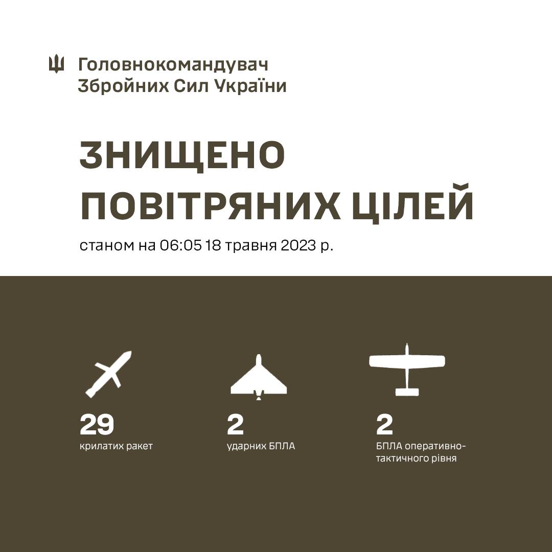 Уничтожено 29 крылатых ракет. Также сбиты два "Шахида".