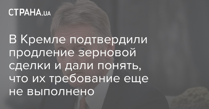 В Кремле подтвердили продление зерновой сделки на два месяца. Пресс-секретарь президента РФ Дмитрий Песков заявил, что на переговорах есть "относительный результат".