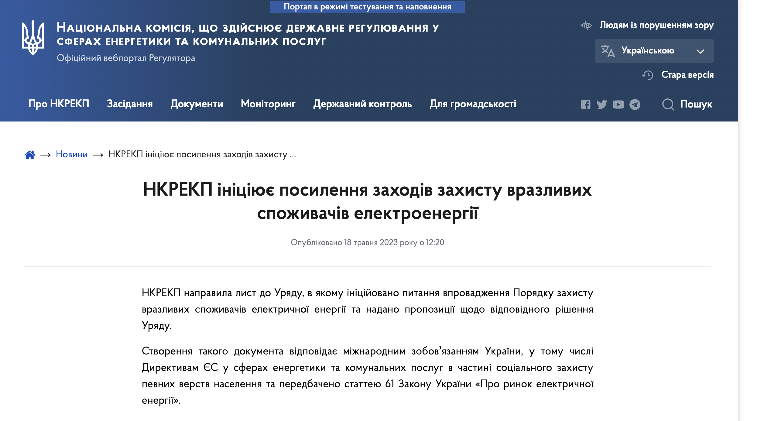 Регулятор по вопросам тарифов (НКРЭКУ) предлагает защитить уязвимые категории населения от отключений электроэнергии. Соответствующий запрос был направлен в Кабмин.
