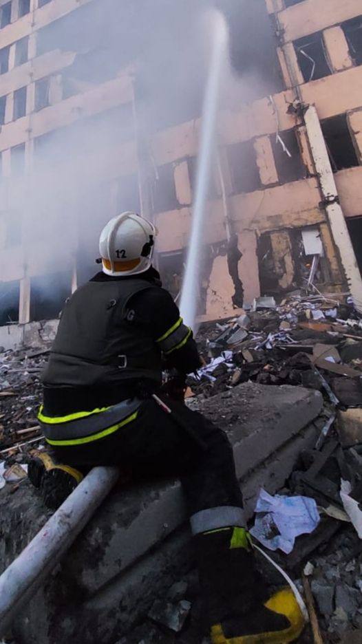 Из-за вражеской атаки пожар возник и в четырехэтажном админздании. Его уже потушили. Легкие ранения получил 45-летний мужчина. Он будет лечиться дома.