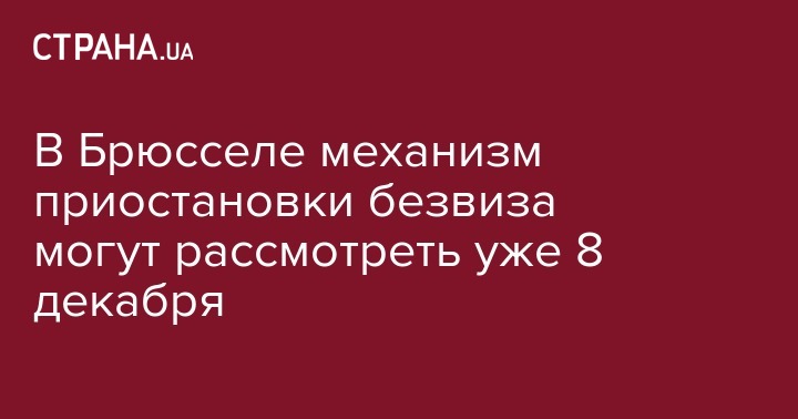 Механизм приостановки безвиза в Брюсселе могут рассмотреть 8 декабря. Об этом сообщает журналист Рикард Йозвяк на своей странице в Twitter.