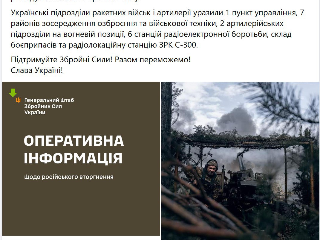 Генштаб ВСУ опубликовал новую сводку с фронта. Фото: Facebook
