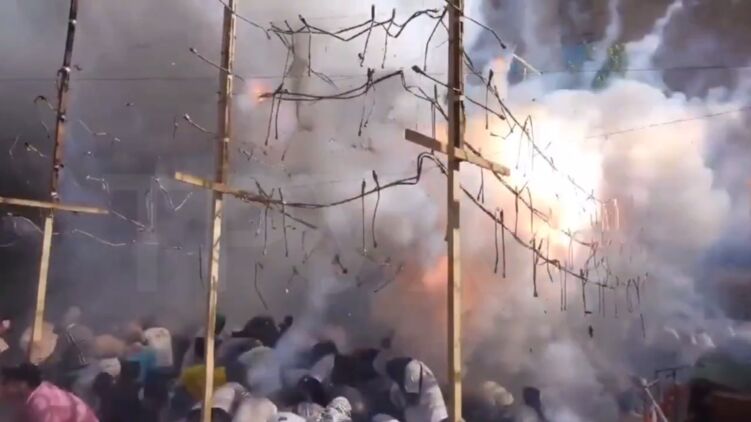На видео можно заметить, что петарды и салюты взрываются прямо в толпе.